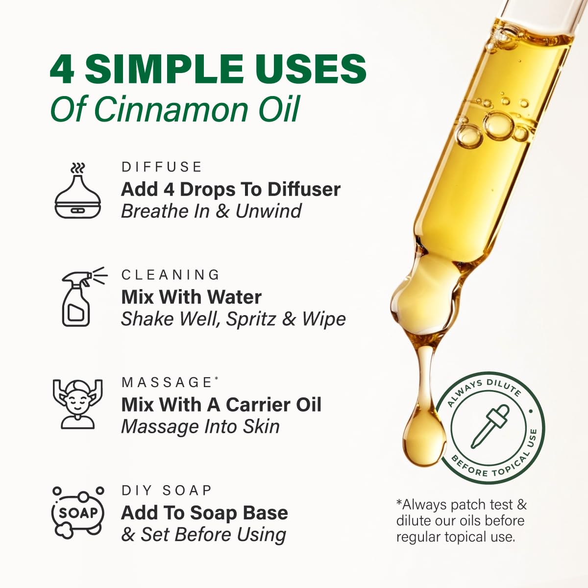 - Add 1–2 drops to a diffuser to enjoy a warm, soothing spicy aroma indoors.