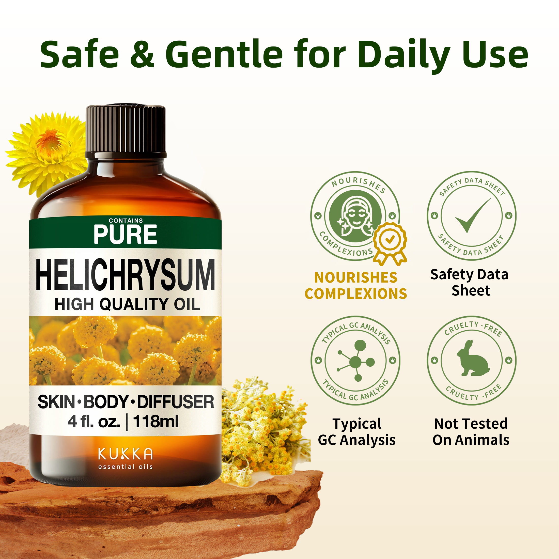 A sweet, earthy, and soothing aroma sourced from Slovenian helichrysum flowers