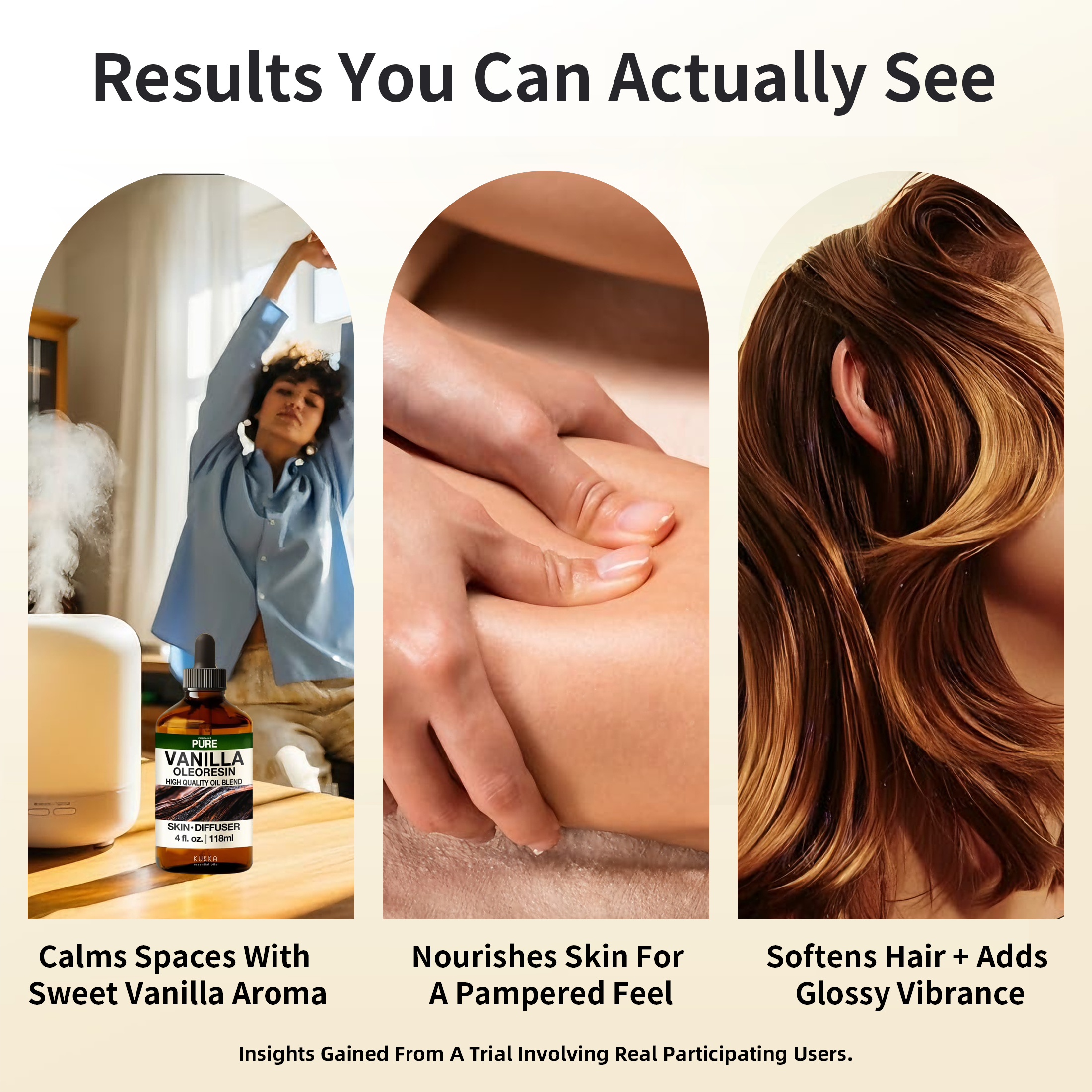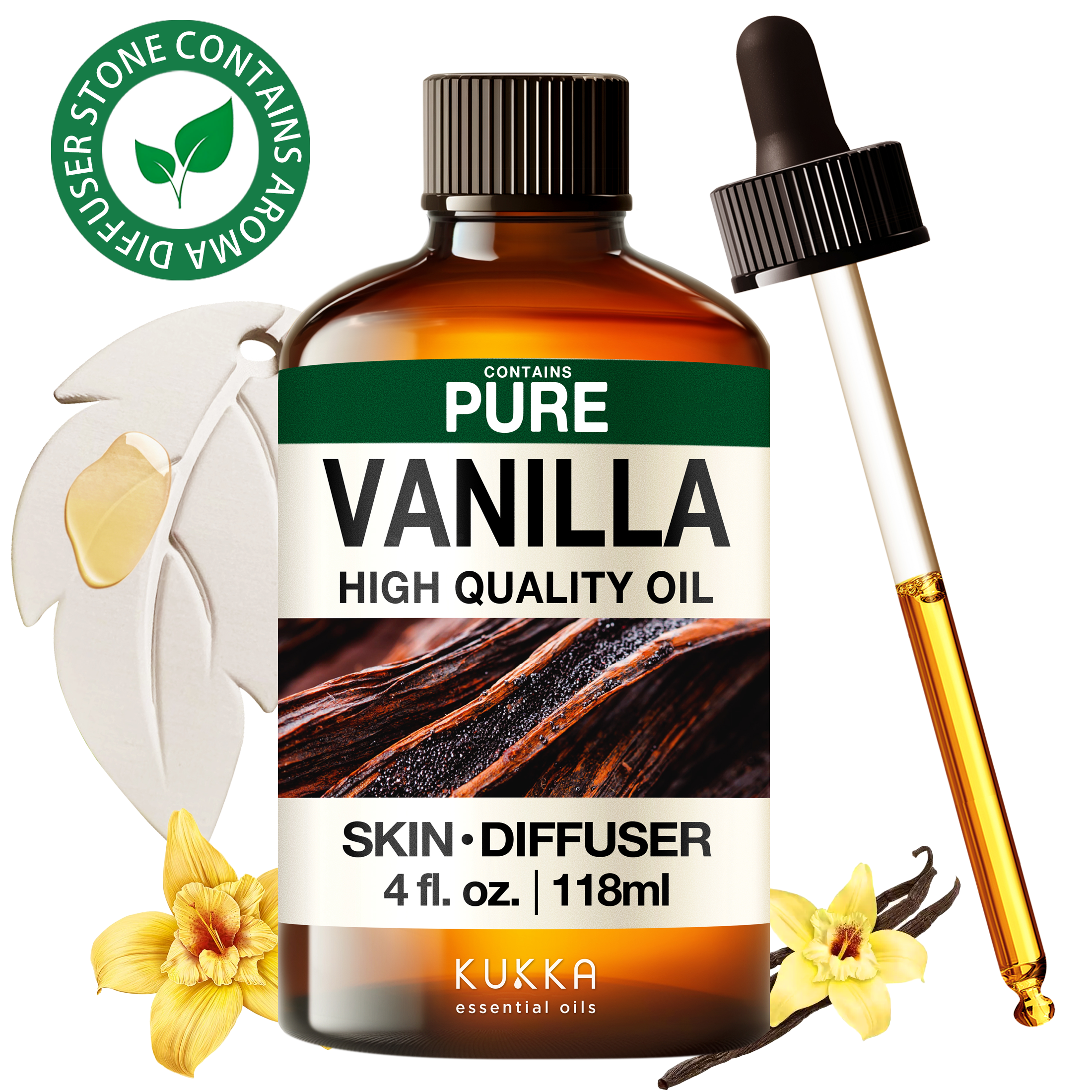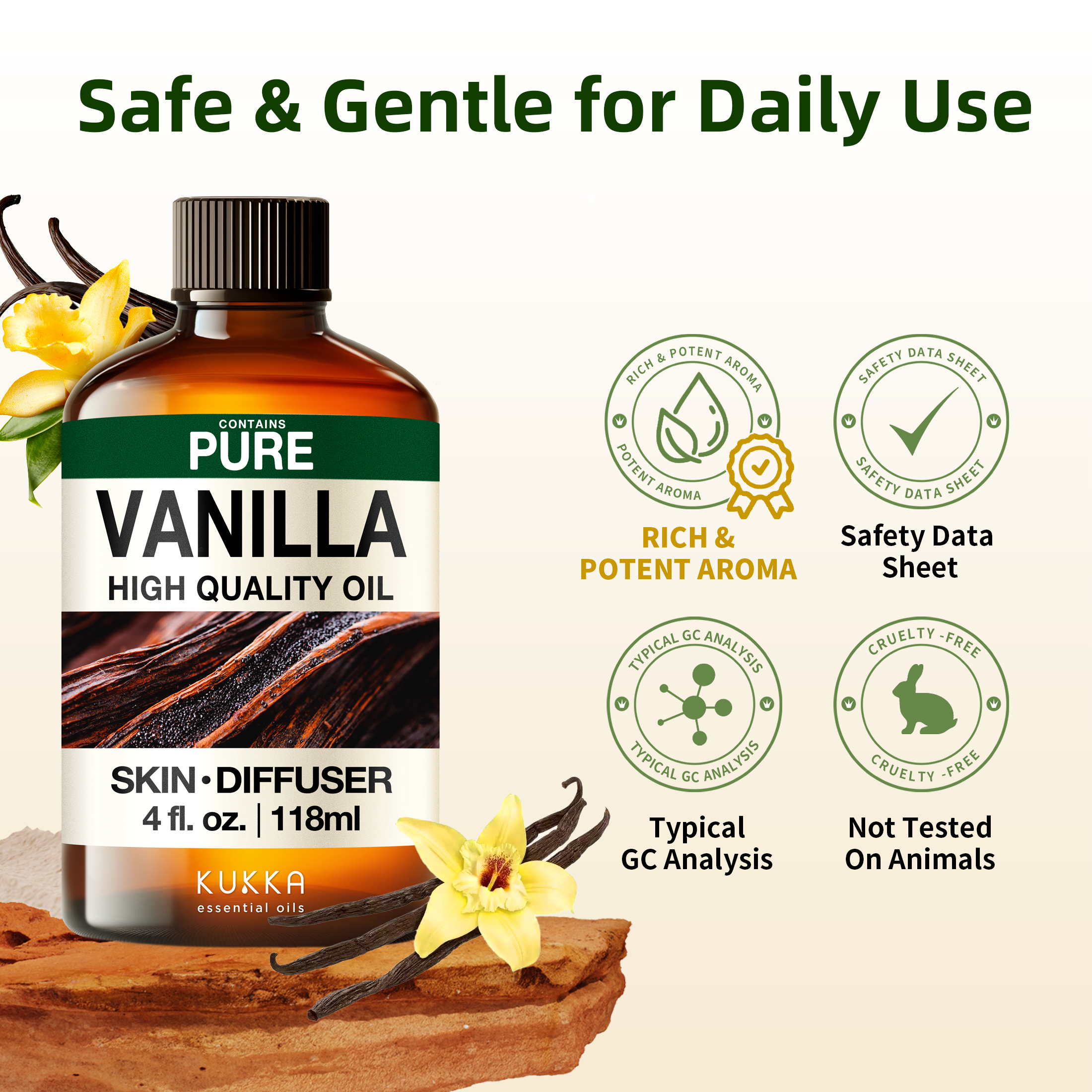 - Diffuse 3-5 drops to fill your space with the sweet, cozy vanilla fragrance.